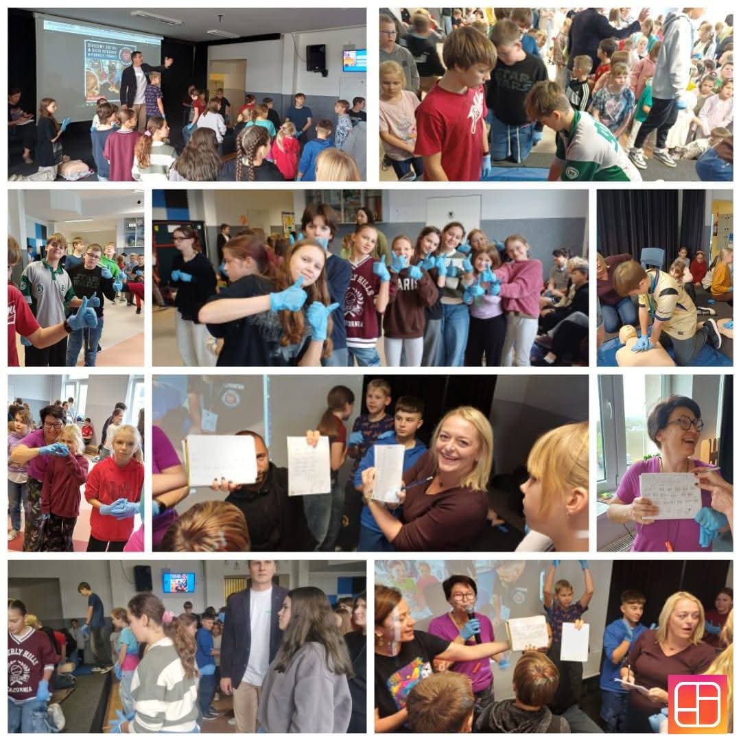 w Europejskim Dniu Przywracania Czynnosci Serca bijąc rekord w pierwszej pomocy organizowany przez Wielką Orkiestrę Światecznej Pomocy. Uczniowie wraz